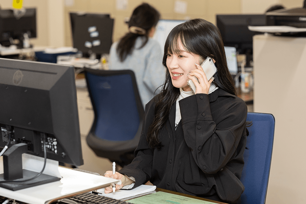 支店での電話対応やデータ入力、契約書の作成、書類の発送などを担当しています。